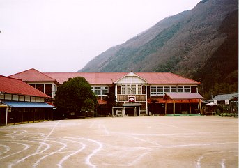 3.立翠小学校 松山郊外にある双海町には趣のある小学校があります。注目すべきは校庭にある相撲の土俵です(右端)。